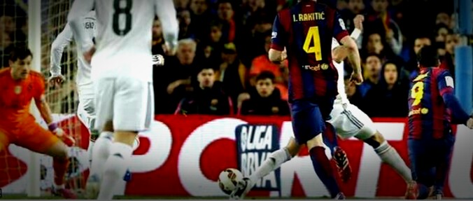 Barca kemudian pergi ke depan setelah Suarez memenangkan tendangan bebas, Lionel Messi mengayunkan ke tengah dan Perancis bek tengah Mathieu tiba tanpa tanda untuk mengirim sundulan sempurna ditempatkan melewati menyelam dari Iker Casillas.