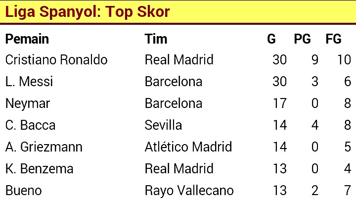Top Skor Liga Spanyol masih di pegang